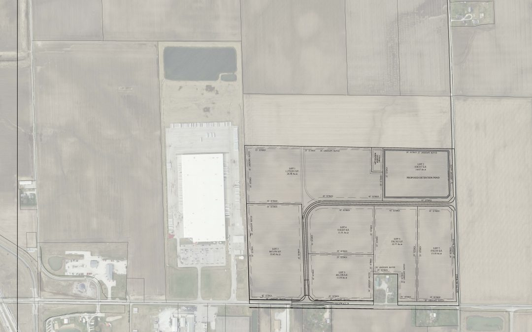 HWC also provided the public infrastructure construction documents, which included the design of a public road, water main extension, and sanitary main extension. The proposed development will utilize a regional detention pond. HWC designed and provided a drainage masterplan for future developments to utilize when parcels are ready to be designed and constructed. HWC also coordinated to obtain permits with INDOT for the proposed driveway connection onto US Highway 24 and the water and sanitary main extensions within INDOT’s right-of-way.